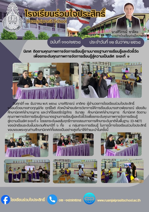 นิเทศ ติดตามคุณภาพการจัดการเรียนรู้ตามมาตรฐานการเรียนรู้และตัวชี้วัดเพื่อยกระดับคุณภาพการจัดการเรียนรู้ สู่ความเป็นเลิศ ระยะที่ ๑